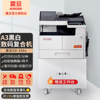 震旦AD228e/AD268e A3黑白激光数码复印机复合机打印复印扫描多功能一体机双面网络打印机 AD268e主机+输搞器+网卡 自营